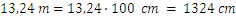 Let’s transform some values from one unit to another: how many centimeters is 13,24 meters?